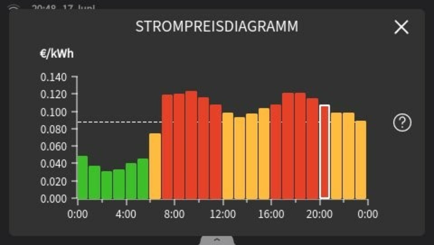 Durch die Kombination aus variablen Stromtarifen und Photovoltaik-Strom können Sie Ihre Energiekosten signifikant reduzieren. Die Smart Price Adaption verschiebt den Betrieb Ihrer Wärmepumpe auf Zeiten, in denen der Strompreis niedrig ist, und nutzt dabei auch den günstigeren Solarstrom aus Ihrer eigenen Anlage.